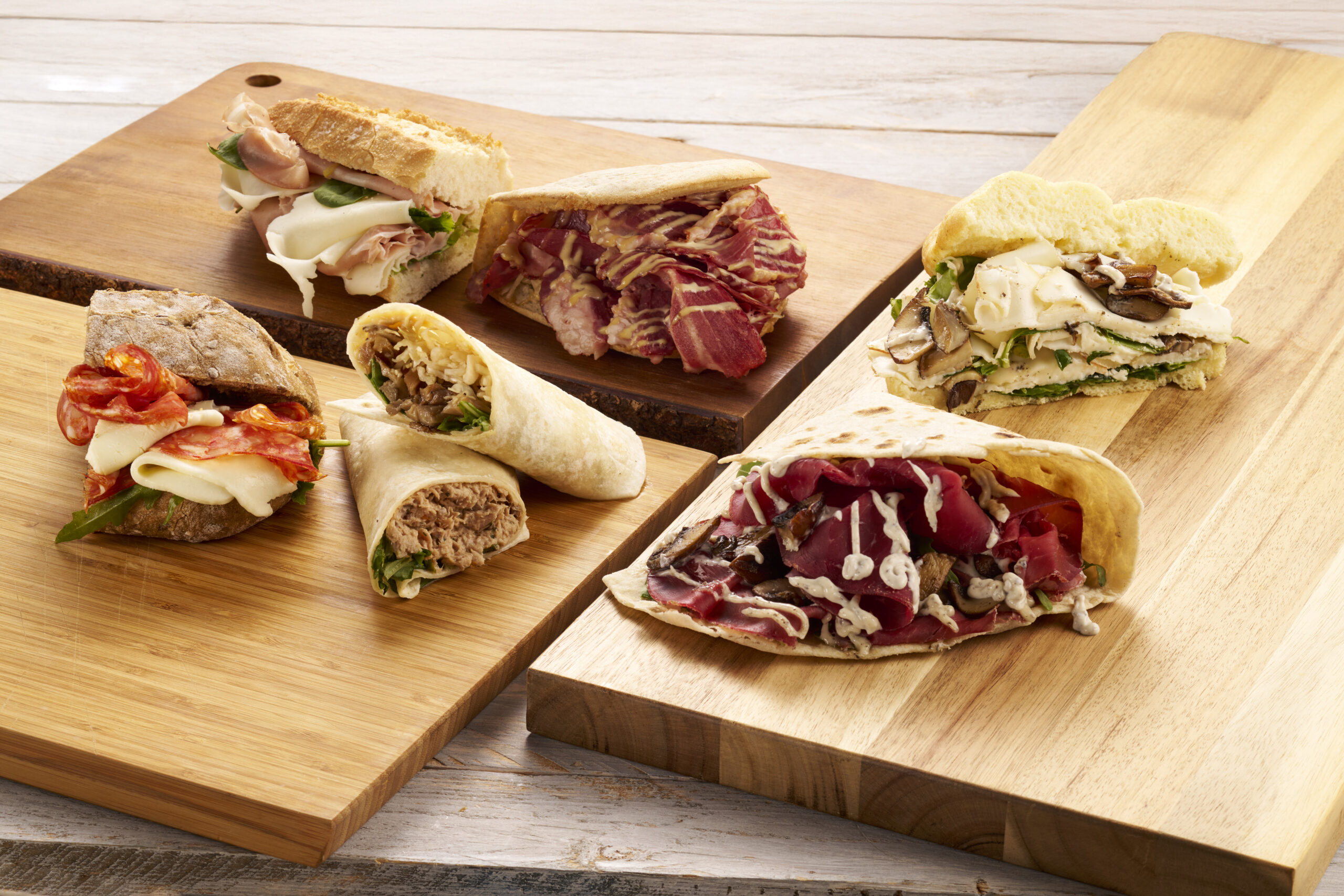 Mogelijke soorten beleg (lijst is niet limitatief): Bresaola, pastrami, zalm, mortadella,